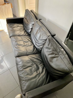 Riproduzione del divano in pelle nera Pk31-3Riproduzione del divano in pelle nera Pk31-3