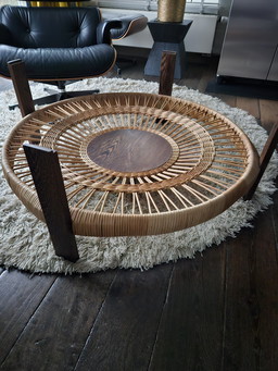 Tavolino da caffè in bambù e rattan, Italia anni '60.
