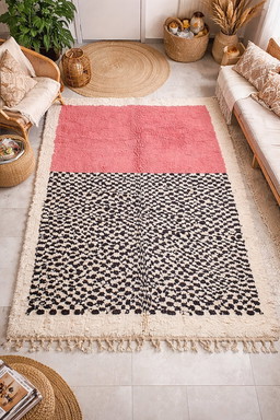 Tappeto in lana MAROCCHINO A QUADRI ROSA 230x250 cmTappeto in lana MAROCCHINO A QUADRI ROSA 230x250 cm