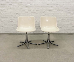 Mid-Century Set of Two White Osvaldo Borsani ‘Modus’ Fiberglass and Aluminium Desk Side Chairs for Tecno, Italy, 1970s.