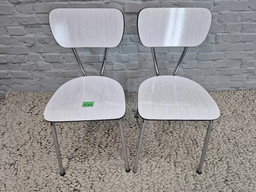 Sedie da cucina dal design vintage di Brabantia, in formica striata bianca e grigio chiaro, Paesi Bassi, anni '60 - Set di 2