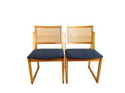 Sedia a slitta vintage in legno di faggio e canna degli anni '70 e '80