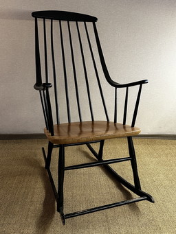 Poltrona vintage in legno di teak giallo, recentemente rivestita in senape