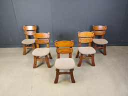 Sedie da pranzo brutaliste olandesi d'epoca in rovere, anni '60