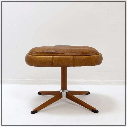Poggiapiedi girevole in pelle marrone con base in metallo - De Sede, Svizzera.Poggiapiedi girevole in pelle marrone con base in metallo - De Sede, Svizzera.