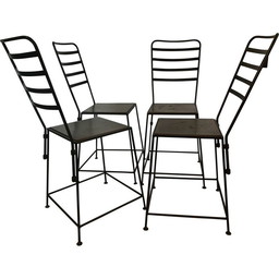 Set di 4 sedie industriali in metallo, Francia 1990