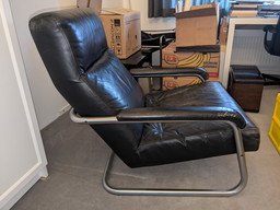 Poltrona in pelle nera cromata anni '80