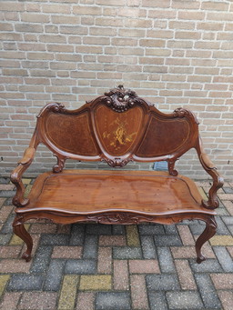 Set di 2 sedie e 1 divano, in stile antico cinese/francese Napoleone 111. Set ristrutturato.