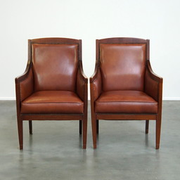 Poltrone in pelle vintage inglese color cognac, set da 2