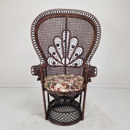 Sedia Emmanuelle o Peacock in rattan e vimini, Italia, anni '60