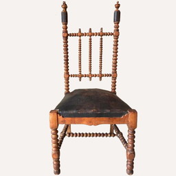 Sedia francese in pelle e orzo intrecciato, anni '50 del XIX secoloSedia francese in pelle e orzo intrecciato, anni '50 del XIX secolo