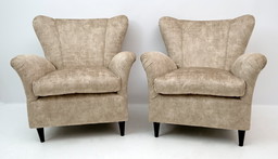 Coppia di poltrone con schienale alto in velluto italiano della modernità di metà secolo, 1950