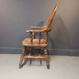 Elegante poltrona Windsor inglese antica con schienale alto, risalente all'inizio del XIX secolo.
