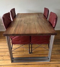 4 sedie Montis Chaplin in pelle color bordeaux e tavolo in legno massello