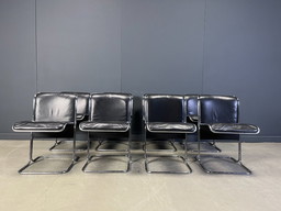 4 Nuove sedie da pranzo Leolux Callas in pelle nera
