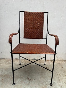Sedia vintage in rattan intrecciato e metallo – Stile metà secolo