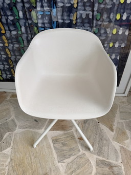 Wit stoeltje:Alias model 437, zelfstellende draaistoel met armleuningen en een viersteronderstelt met glijders.Wit stoeltje:Alias model 437, zelfstellende draaistoel met armleuningen en een viersteronderstelt met glijders.