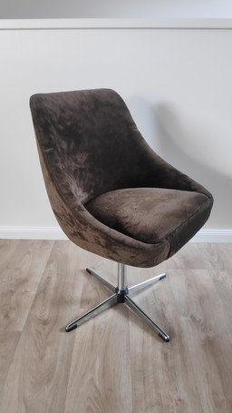 Sedia girevole a uovo vintage anni '70 - Tessuto marrone/verde oliva molto scuro