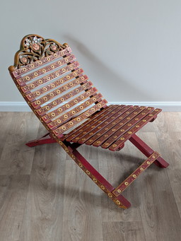 Poltrona pieghevole vintage dipinta a mano – Sud asiatico/pakistano – metà del XX secolo