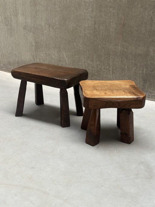 Set di 2 sgabelli/tavolini vintage in stile brutalistaSet di 2 sgabelli/tavolini vintage in stile brutalista