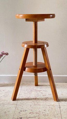 Sgabello tripode in legno tinto design vintage brutaliste popolare Francia anni '50