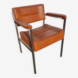 Set di 4 sedie a slitta vintage degli anni '70 in metallo cromato e similpelle color cognac