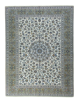 Tappeto orientale Nain 9La annodato a mano – 291 x 195 cm – Dettagli raffinati con contenuto di seta nei colori crema e bluTappeto orientale Nain 9La annodato a mano – 291 x 195 cm – Dettagli raffinati con contenuto di seta nei colori crema e blu