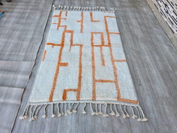 Moroccan Mrirt Rug Handmade Wool 200x300 cm – Modern Berber Rug – Cream Orange Yellow Area Rug – Contemporary Deco