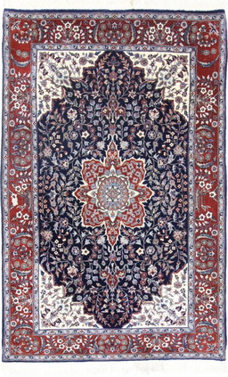 Tappeto cinese antico originale annodato a mano in stile Isfahan, 203 x 125 cm, in ottime condizioni