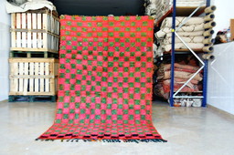 Tappeto in lana verde-nero tessuto a mano con motivo geometrico – 100% lana naturale dalla Tunisia