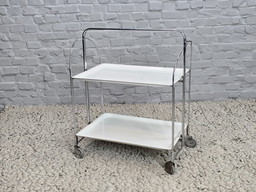Vintage Foldable and Mobile Chrome Steel ‘Dinett’ Serving Trolley with 2 White Layers by Gerlinol, Germany, 1970s.