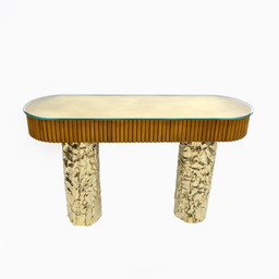 Consolle in ottone e vetro attribuita a Nanda Vigo – Italia, circa 1970