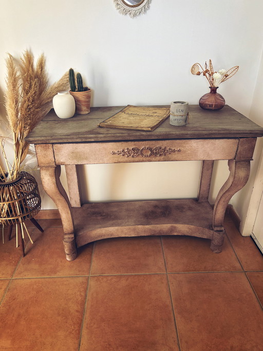 Splendida consolle in stile shabby chic con patina toscana.