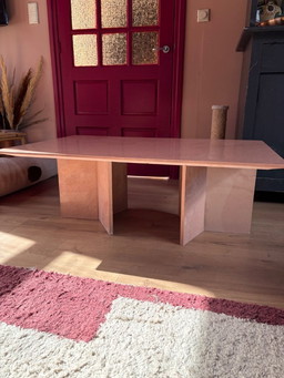 Tavolino vintage in marmorino rosa dal design italianoTavolino vintage in marmorino rosa dal design italiano
