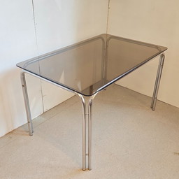 Tavolo da pranzo Belgochrom con piano in vetro fumé