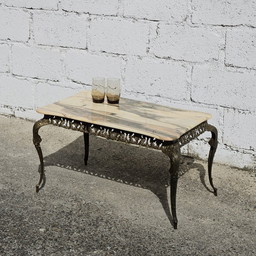 Tavolino brutalista con piano in pietra naturale, anni '70
