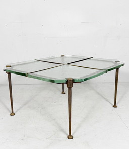 Tavolino da caffè Michel Mangematin in bronzo e vetro, anni '60Tavolino da caffè Michel Mangematin in bronzo e vetro, anni '60