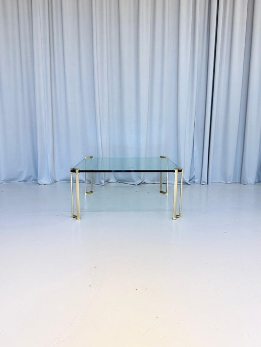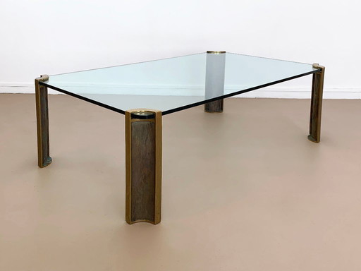 Tavolino da caffè vintage in bronzo e vetro temperato di Peter Ghyczy, anni '70