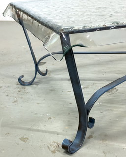 Tavolino da caffè in vetro soffiato su ferro battuto