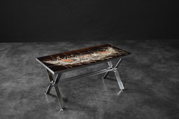c. 1980 - Tavolino in marmo brecciato e cromo - Francia