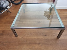 Tavolino da caffè vintage in vetro e metallo stile Paolo Piva