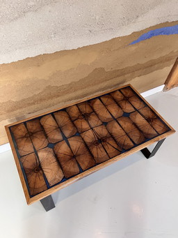 Tavolino da caffè in formica con gambe in ottone e pesce