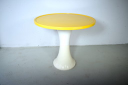 Tavolino vintage giallo stile Space Age degli anni '70 a forma di tulipanoTavolino vintage giallo stile Space Age degli anni '70 a forma di tulipano