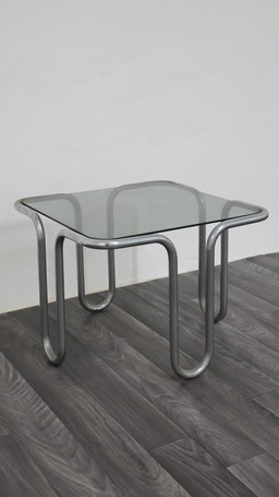 Ezio Didone Tavolino In Acciaio Tubolare Cromato Cristallo Fumè Design Anni ‘70