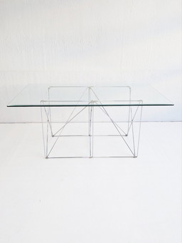 Tavolo da pranzo pieghevole in acciaio e vetro di Max Sauze, anni '70