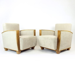 Set di due poltrone Art Déco in noce e tessuto, Cecoslovacchia, anni '30