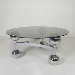 Tavolino da caffè in vetro con struttura in acciaio inox