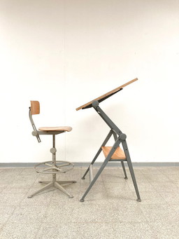 Tavolo da disegno "Reply" di Friso Kramer/Wim Rietveld con sedia da architetto.Tavolo da disegno "Reply" di Friso Kramer/Wim Rietveld con sedia da architetto.