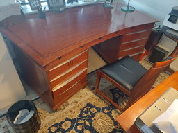 Scrivania in legno con piano in pelle