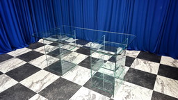 Scrivania vintage anni '80 in vetro stile Art Deco Revival Postmoderno anni '80 Italia